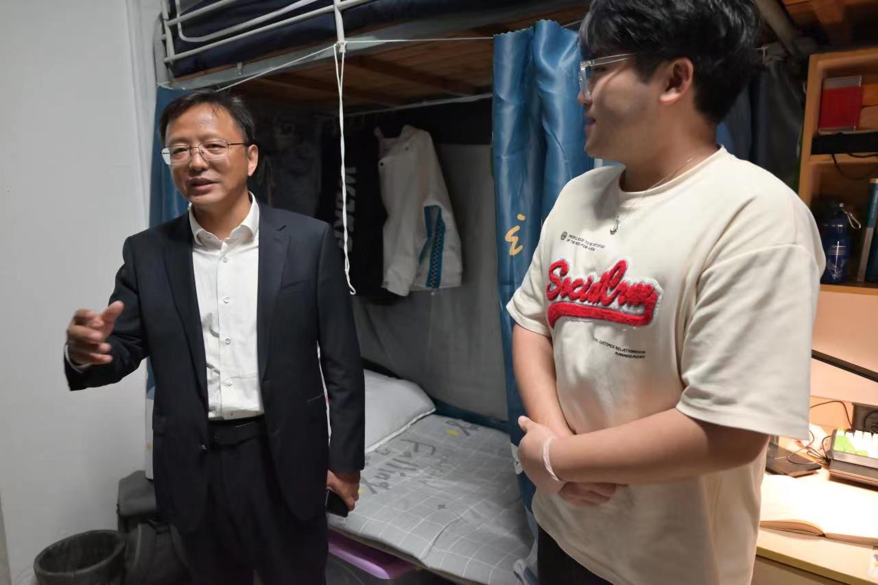 作者:刘建峰 发布日期:2022-10-26 浏览:次为加强与学生的沟通联系,及时了解掌握大学生的思想动态,进一步落实立德树人根本任务,10月25日下午,校党委书记姜朋明来到土木2216班和江枫宿5-114看望联系班级和宿舍学生。搜同 党委书记刘志强、常务副院长赵宝成(正处级)、副书记兼副院长刘建峰、副院长范存新以及辅导员、班主任随同参加。