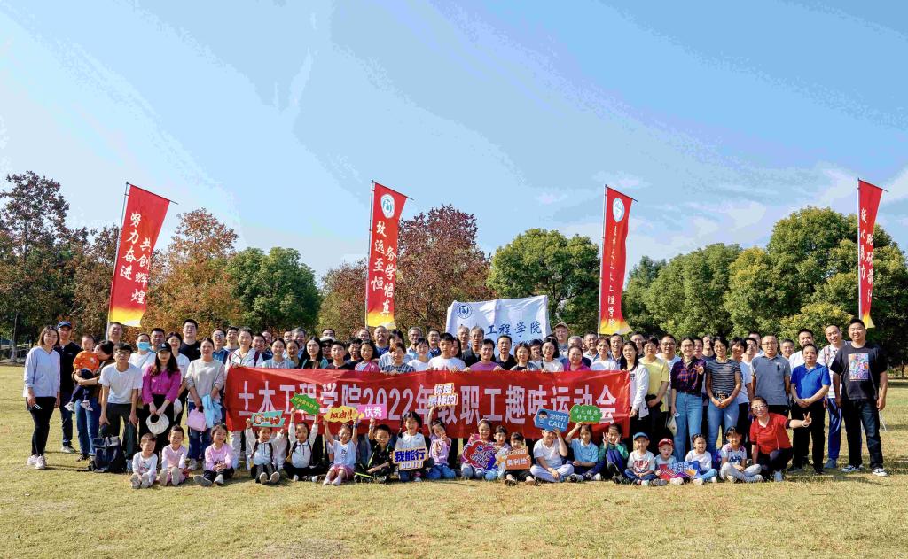 本次趣味运动会共设置齐心协力、众星捧月、袋鼠跳、摸着石头过河、势均力敌和拔河6个比赛项目,此外还在齐心协力、袋鼠跳和势均力敌项目设置了亲子互动组别。参加比赛的老师分为建工、道岩、工管、交通力学材料、实验室、行政6支代表队,每组比赛由各队队长指派队员参加比赛。运动会巧妙地将竞技与趣味相结合,更注重对各个项目的体验感、参与感。本次趣味运动会设置了多项亲子互动项目,让老师们在紧张工作之余也能回归家庭,带上自己的孩子一起参与到学校的活动中来,一起感受土木大家庭的温暖与活力。老师们在比赛中充分发扬了团队精神,展现了土木搜同教职工奋发向上,努力拼搏的精神风貌。