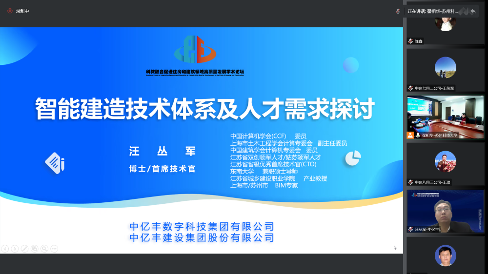 与会代表们对智能建造、数字化转型、复合型人才培养等展开激烈讨论。企业代表表示对智能建造领域复合型人才的迫切需求,高等院校代表表示把握数字经济,实现建筑业转型升级的当务之急是培养智能建造方面的人才,加强产学研各方深度合作,为国家输送复合型智能建造人才。苏州分会场会议闭幕式由搜同 翟相华博士主持,本次会议在全场热烈的气氛中圆满落幕。
