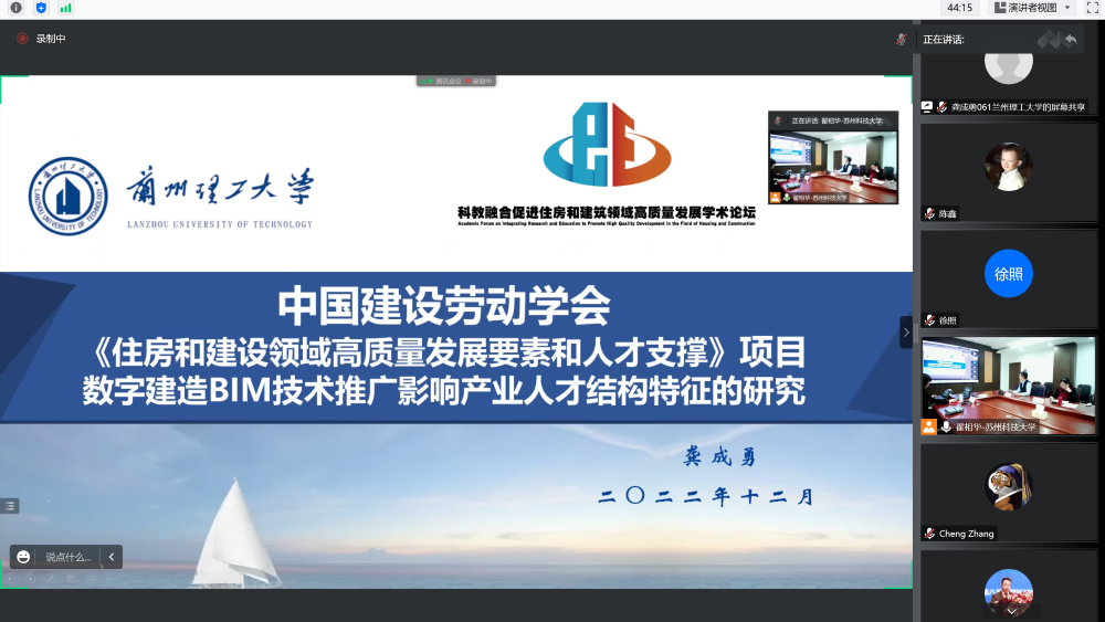 作者:翟相华 图片作者:翟相华 发布日期:2022-12-12 浏览:次2022年12月10日,“科教融合促进住房和建筑领域高质量发展学术论坛”苏州分会场在搜同 隆重召开。本次会议由中国建设劳动学会主办,搜同 、中国建筑一局(集团)有限公司、郑州大学、北京经济管理职业搜同、滨州职业搜同、上海龙舟投资管理有限公司、采薇君华教育科技南通有限公司承办,旨在为进一步推进新时代高素质建筑产业人才队伍建设的学术研究,指导与推进创新型、应用型、技能型人才培养提供一个交流平台,促进产学研各方深度合作,达到提升各类人才培养水平,推进建筑领域高质量的发展。