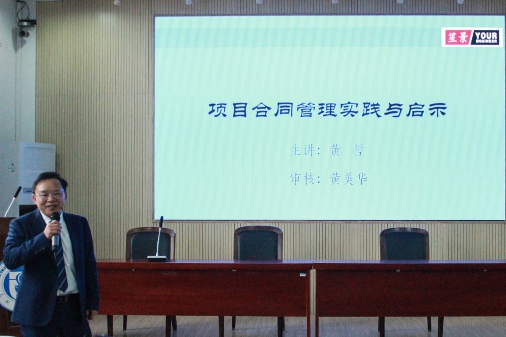 徐叶波结合自身工程项目招投标实践经验,从招投标的概述、流程、典型案例、风险防范四个方面讲述工程项目招投标过程。黄哲以工程合同管理实践与启示为题,将专业知识与案例结合,从项目合同管理的意义、项目合同管理实践、项目合同管理三个方面分享自己的实践感悟。黄美华针对我国当前工程咨询发展现状与困境,根据工程咨询的业务领域和工作内容,分享公司发展过程中的典型工程案例,并对工程管理专业学生学习、择业、成长为优秀工程咨询工程师提出建议。