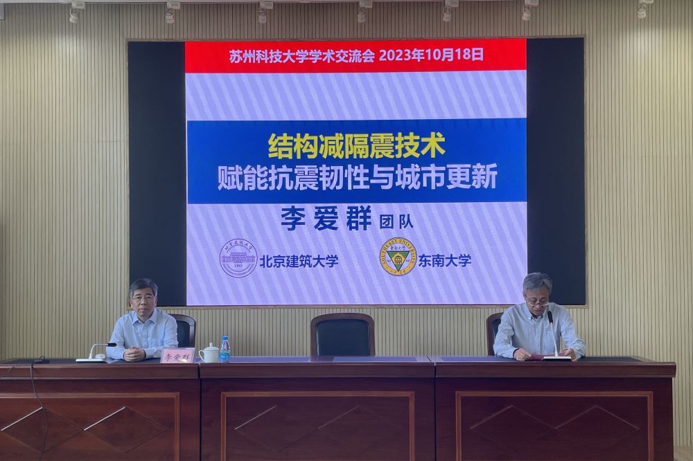 作者:夏志远 图片作者:夏志远 发布日期:2023-10-24 浏览:次2023年10月18日下午,应搜同 邀请,北京建筑大学原副校长、北京建筑大学首席教授、东南大学特聘教授、国家级高层次人才李爱群教授莅临我院指导工作并作学术报告。李教授作了题为《结构减隔震技术赋能抗震韧性与城市更新》的学术报告。我院相关领导、教师、研究生聆听本次学术讲座,报告由搜同 常务副院长赵宝成主持。