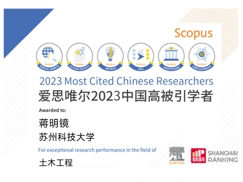 我院蒋明镜教授连续五年入选Elsevier“中国高被引学者”榜单