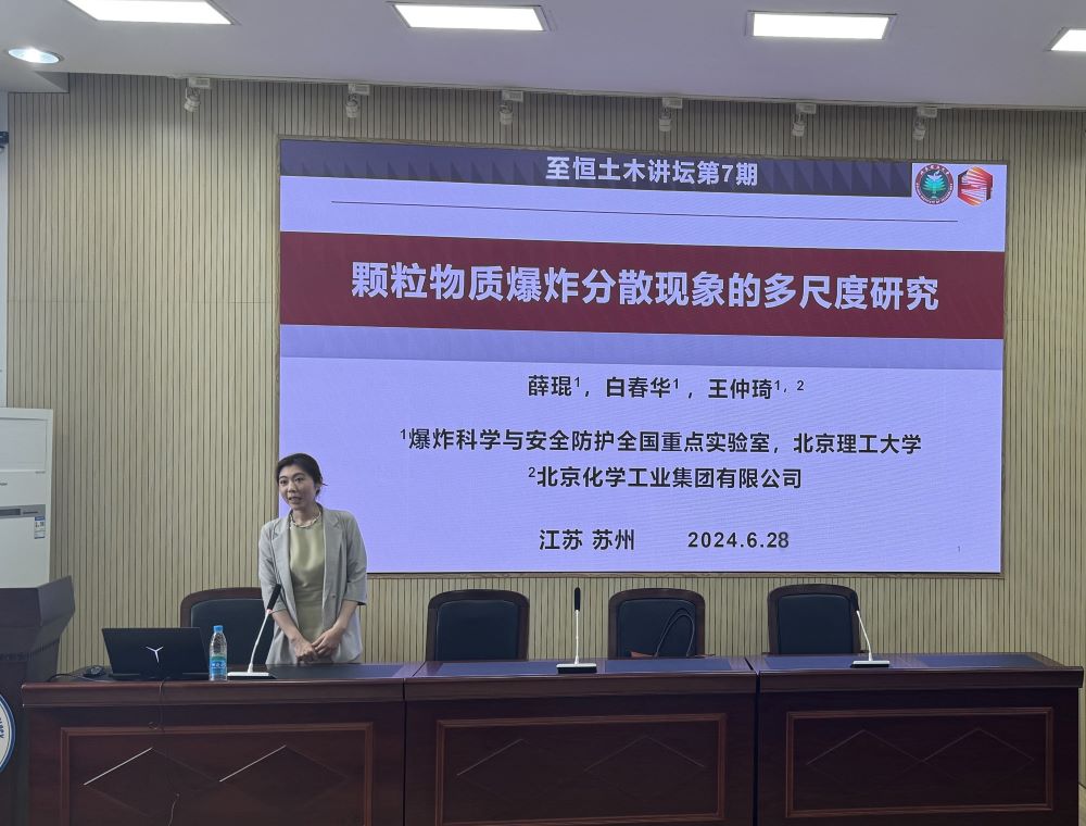 作者:王浩栋、韩亮 图片作者:赵展博 来源:搜同 发布日期:2024-07-03 浏览:次2024年6月28日上午10:00,在搜同 北楼二楼报告厅,来自北京理工大学的薛琨教授应蒋明镜教授邀请为我院师生作了题为“颗粒物质爆炸分散现象的多尺度研究”的学术报告。