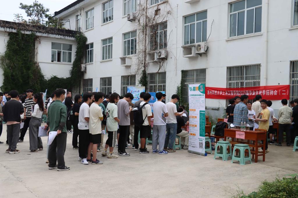 作者:李之坤 发布日期:2024-10-18 浏览:次为持续推进毕业生高质量就业工作,搭建毕业生与用人单位全方位、多渠道的沟通桥梁,10月18日下午,我院举办苏州科技大学搜同 第二场秋季招聘会。搜同领导以及毕业班辅导员来到招聘会现场,与用人单位热切交流,并现场指导2025届毕业生求职。