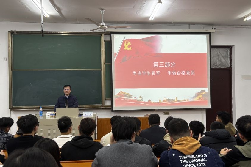 刘志强从党的二十大报告关于全面从严治党、严明党的纪律、严守制度红线等方面,深刻阐述了党的纪律基本含义、党的六大纪律及具体表现,引导学生党员们加强党性锻炼,提高党性觉悟,严守党纪法规,坚定理想信念。最后,刘志强号召同学们立大志、明大德、成大才、担大任,以聪明才智贡献国家,以开拓进取服务社会,谱写更为动人的新时代青春之歌!