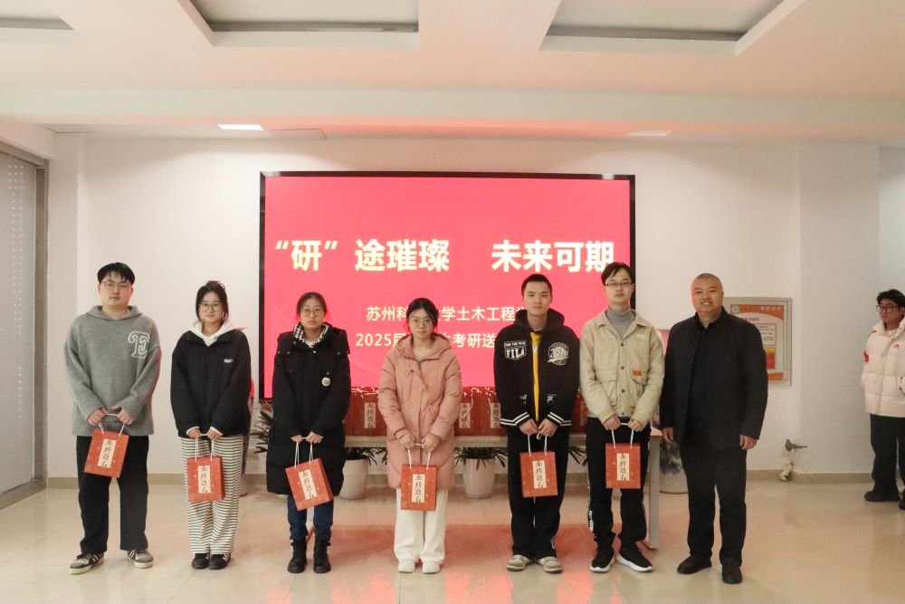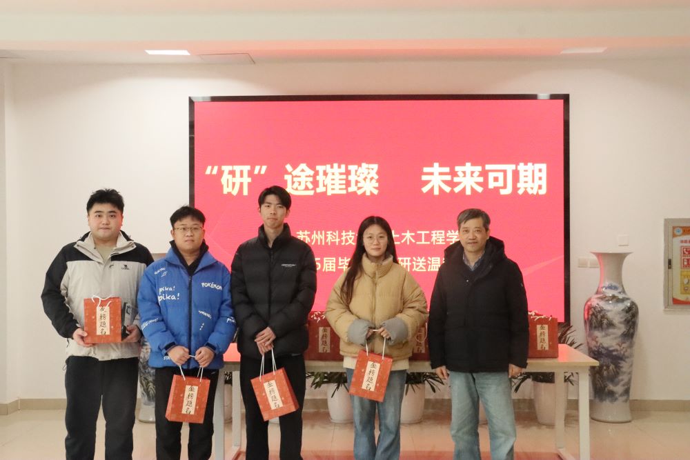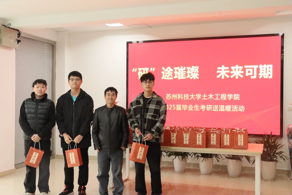 作者:李之坤 图片作者:李之坤 来源:搜同 发布日期:2024-12-13 浏览:次寒窗书剑十年苦,今日向阳花正开。2025年全国硕士研究生招生考试即将来临,考研学子也进入了最后冲刺阶段。为帮助土木搜同2025届考研学子坚定备考信心、缓解备考压力,12月11日,土木搜同院领导、毕业班辅导员及各班班主任开展了“‘研’途璀璨 未来可期”考研送温暖活动,并为备考学子送去精心准备的考研加油包,全面助力考研学子“研”路生花。