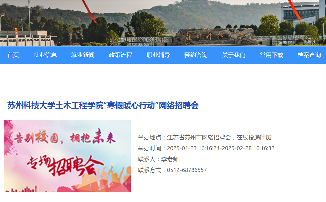 作者:王谦菲 刘建峰 图片作者:李之坤、王烽圣 来源:土木搜同 发布日期:2025-02-10 浏览:次寒假期间,搜同紧抓毕业生求职就业“窗口期”,开展“就业服务不断线 寒假暖心促就业”系列活动,为毕业生求职就业提供精准的就业指导服务,推动毕业生充分就业。