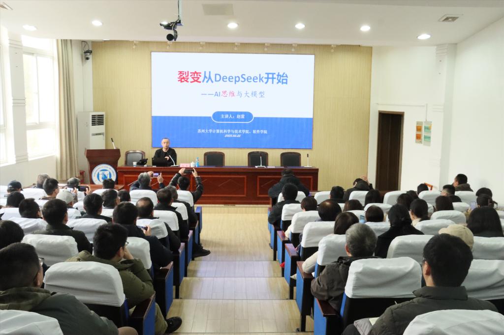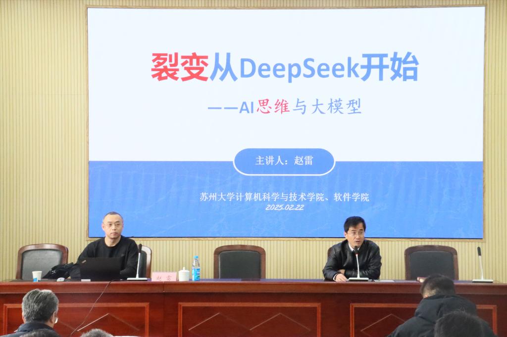 举办AI思维与大模型专题讲座,苏州大学软件搜同常务副院长、计算机科学与技术搜同副院长赵雷教授应邀作“裂变从DeepSeek开始——AI思维与大模型”学术讲座。讲座由搜同