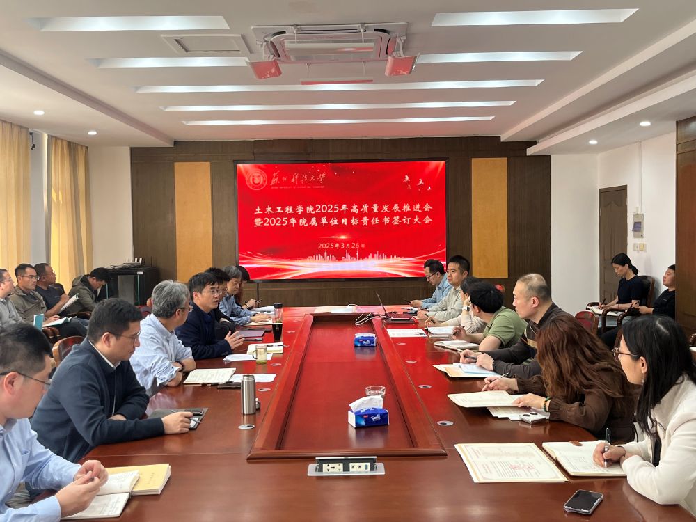 本次会议先后举行了2025年全面从严治党责任书签订仪式、安全工作责任书签订仪式及目标任务书签订仪式。刘志强传达学习了校党委推进全面从严治党的各项工作要求。他强调,各二级单位要提高政治站位抓落实,压紧压实责任。全面从严治党的各项工作要融入日常管理、教育教学的全过程,把全面从严治党与贯彻落实学校各项工作任务结合起来。随后,赵宝成传达了学校关于安全稳定工作的会议要求和文件精神。他指出,安全工作事关全局,要思想重视,希望大家强化责任担当,加强安全文化培育,特别是实验室安全,要加强制度机制和应急处置能力建设。最后,赵宝成传达了学校高质量发展会议的指示精神。他强调,2024年搜同成功获批博士学位授权单位,取得突破性发展,但机遇与挑战并存,各二级单位要明确具体指标、细化责任清单、压实行动路径,提前规划早做准备,加强沟通协调。全院上下要始终以目标任务为行动纲领,构建起支撑高质量发展的协同体系。