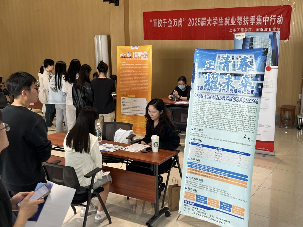 作者:李之坤 发布日期:2025-05-12 浏览:次为助力2025届毕业生高质量就业,搜同 与国际教育搜同于5月9日下午在江枫校区教工之家联合举办"百校千企万岗"大学生就业帮扶季集中行动。活动吸引多家企业参与,涵盖土木工程、工程管理、设计研究等领域。毕业班辅导员来到招聘会现场指导2025届毕业生求职。