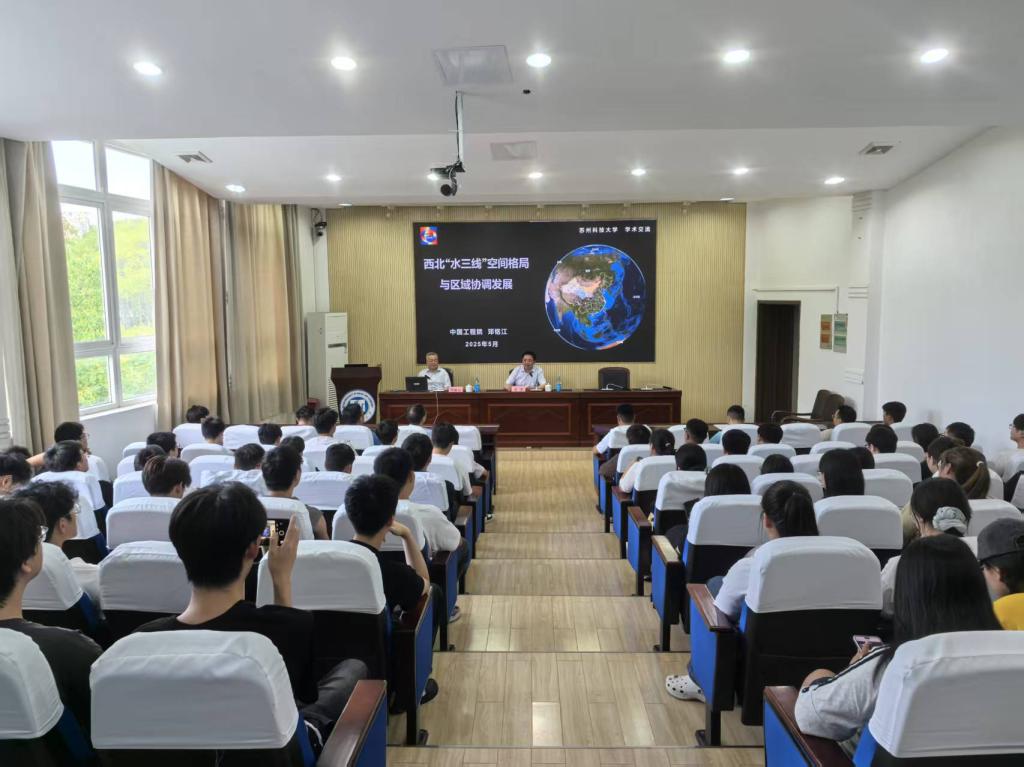 作者:廖想想 图片作者:申燕 发布日期:2025-05-21 浏览:次5月20日,中国工程院院士邓铭江受邀到我校搜同 作“西北’水三线’空间格局与区域协调发展”学术讲座。副校长肖洋,搜同 院长陈育民以及搜同100余名教师和研究生代表参加讲座。讲座由副校长肖洋主持。