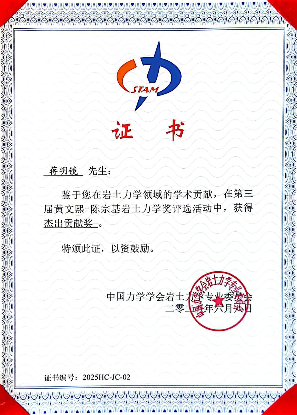 我院蒋明镜教授荣获第三届黄文熙-陈宗基岩土力学奖杰出贡献奖