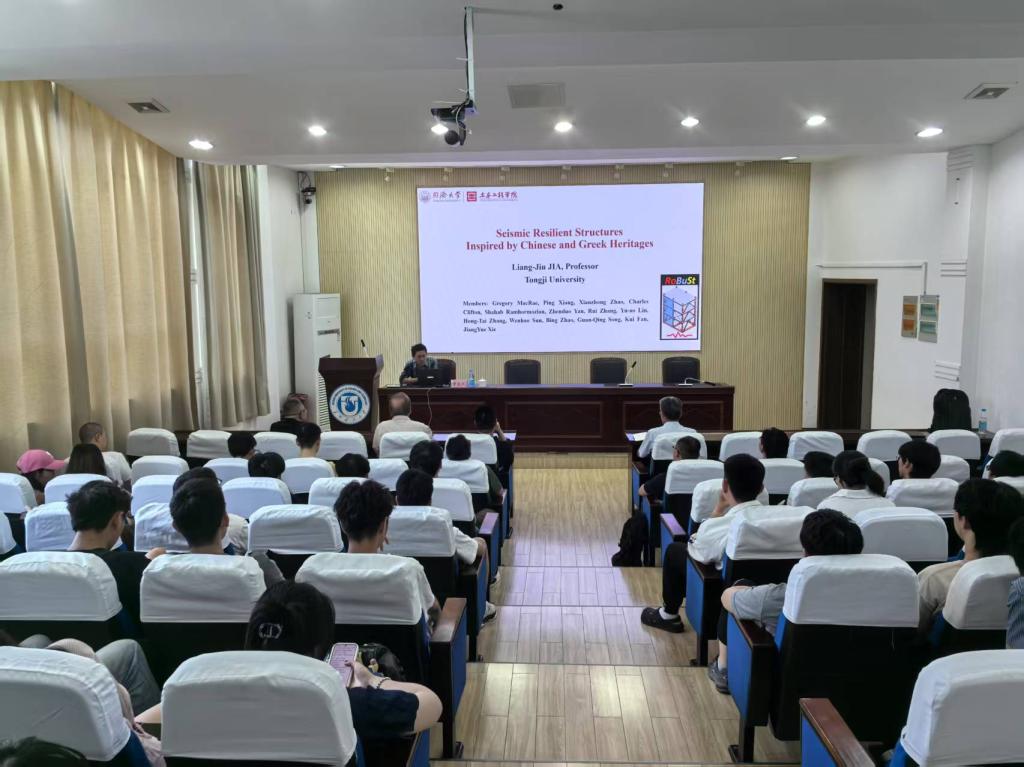 作者:申燕 来源:搜同 发布日期:2025-06-17 浏览:次6月16日,同济大学贾良玖教授受邀到我搜同作“Seismic resilient structures inspired by Chinese and Greek heritages”学术讲座,搜同党委书记赵宝成及100余名师生代表参加了讲座。