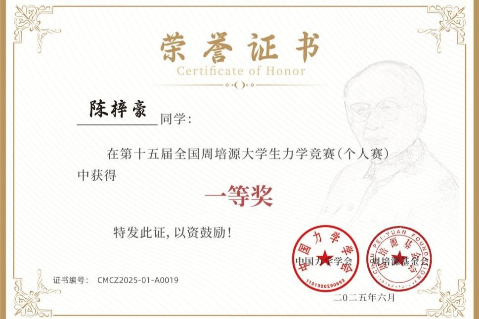 全国周培源大学生力学竞赛是受教育部高等教育司委托,中国力学学会和周培源基金会共同主办的国家级赛事,每两年举行一次,此次竞赛共吸引来自全国30个省、直辖市及自治区的30591名同学报名参赛,覆盖高校500余所,参赛学校数量和人数均创历史新高。本次比赛共颁出特等奖5名,一等奖166名,二等奖311名以及三等奖、优秀奖若干。