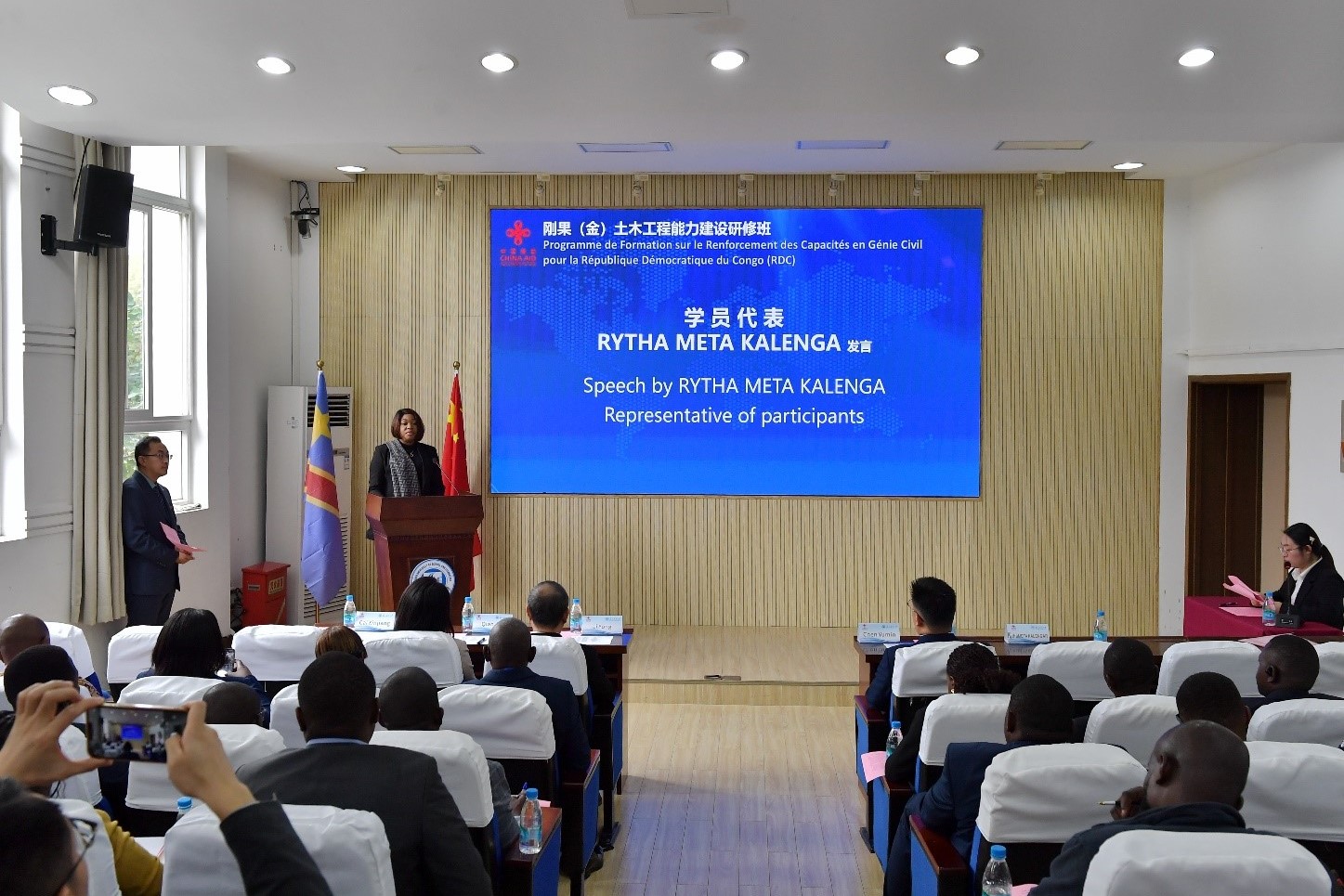来自刚果(金)的瑞莎·梅塔·卡伦加女士作为学员代表发言,表示刚果(金)国家正在大力的发展基础设施建设,无论是在城市发展、交通网络建设,还是在建筑施工的安全管理方面,都面临着众多的挑战与压力。作为学员将珍惜机会,深入学习中国在土木工程领域的成功实践经验,提升自身的专业技能