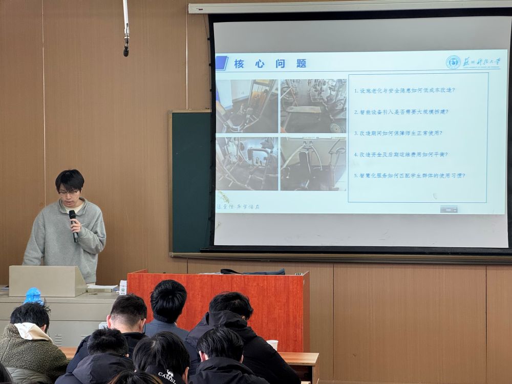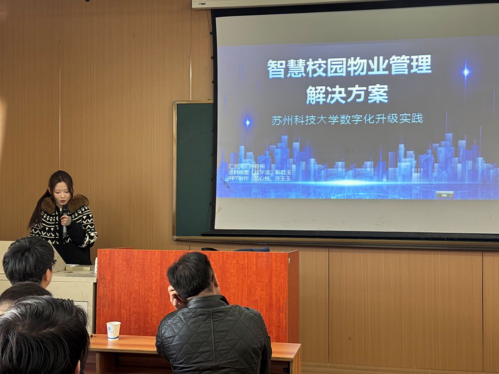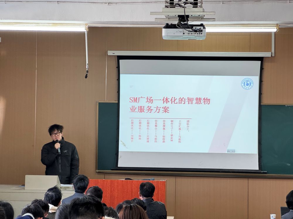作者:田鹏许、吴芳 图片作者:吴芳 来源:搜同 发布日期:2025-11-25 浏览:次2025年11月21日周五3-4节,江枫校区J7教室气氛热烈,23级工程管理专业学生以饱满的热情展示并汇报了各自的物业服务策划方案。由苏州华心科技服务集团(后简称华心集团)的高管队伍组成的专家评委们以专业视角给予细致点评与指导,现场掌声不断。多位评委在精彩方案的感染下,主动走上讲台,近距离给予赞誉与建议,将课堂氛围推向高潮。此次展示标志着工程管理系与华心集团合作的产教融合课程——《房地产概论》物业服务模块首次授课顺利结课。