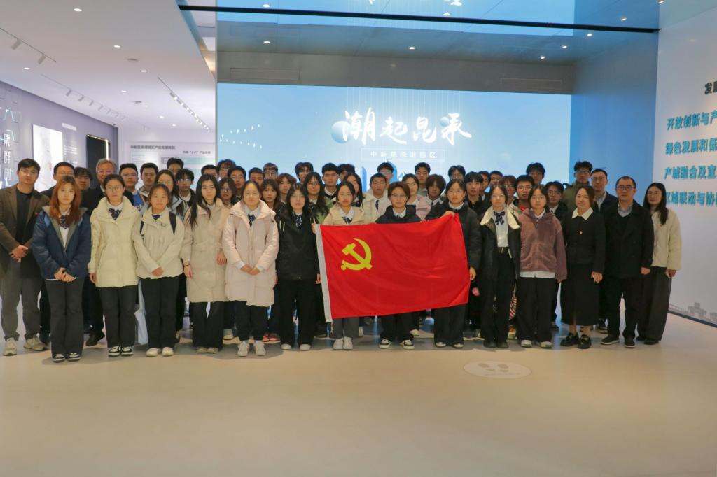 人防工程考察结束后,众人转赴中新昆承湖园区展示中心,开启对区域创新发展的调研。党员们通过观看新媒体短片、聆听专业讲解,深入了解园区作为常熟融合创新区核心的发展定位,清晰展望了这座城南“未来城”的规划样貌。