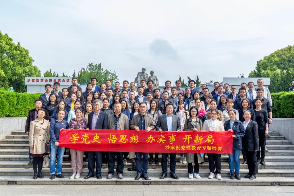 作者:廖想想 来源:搜同 发布日期:2021-04-27 浏览:次为贯彻落实党中央关于开展党史学习教育的相关要求,巩固深化“不忘初心、牢记使命”主题教育成果,教育引导党员干部学党史、悟思想、办实事、开新局,4月25日,搜同 党委组织教职工党员前往革命传统教育基地常熟沙家浜开展“永远跟党走,奋进新征程”党性教育专题培训,共同追忆革命历史、寻访红色足迹、弘扬爱国主义精神。搜同党委书记刘凡、院长毛小勇、党委副书记兼副院长刘建峰、副院长赵宝成等搜同党政领导和教职工党员参加培训。