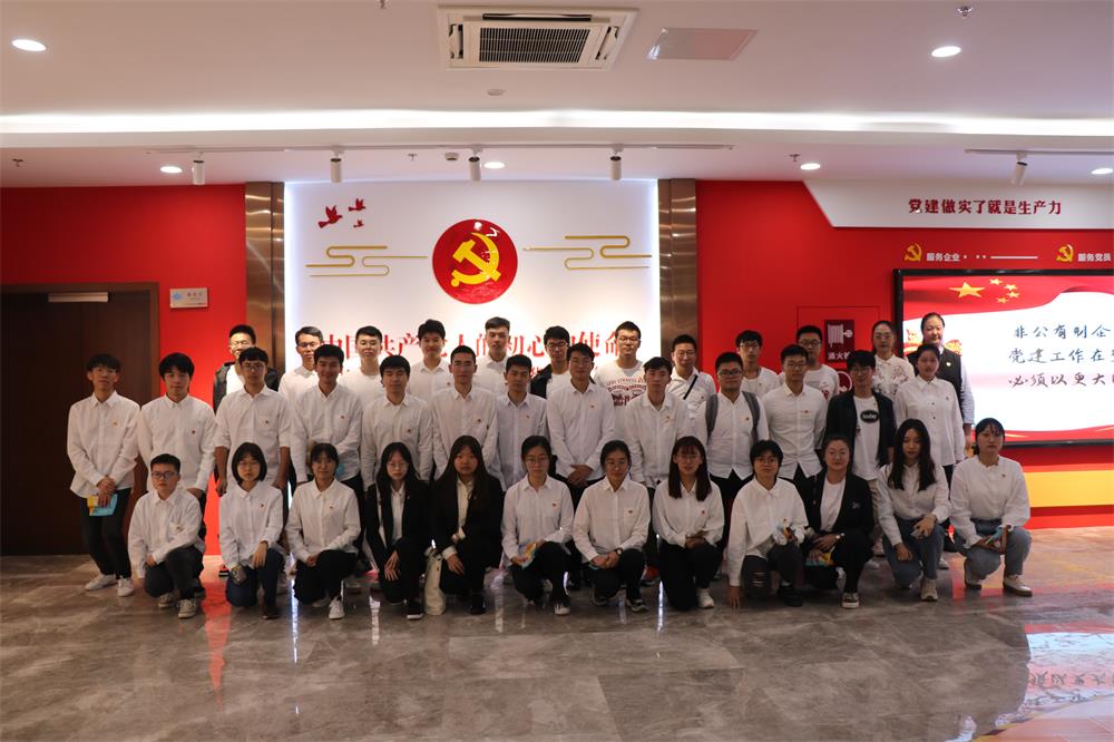 在中设建设集团公司党总支几位同志的带领下,师生党员们参观了以“党建引领、企业振兴”为主题的企业发展展览,了解了企业当前的发展规模与分布,企业从创业时代、发展时代再到转型时代的发展历程,企业慈善和高新技术成果等情况,展示出在党的引领下,非公有制企业的蓬勃发展画卷。之后,师生党员们来到中设集团党建展览板块,观看了中设集团从党支部到党总支的发展历程。在“展党员风采,筑战斗堡垒”板块,师生们学习了基层党员如何先锋模范作用,在平凡的工作岗位取得不平凡的成就。