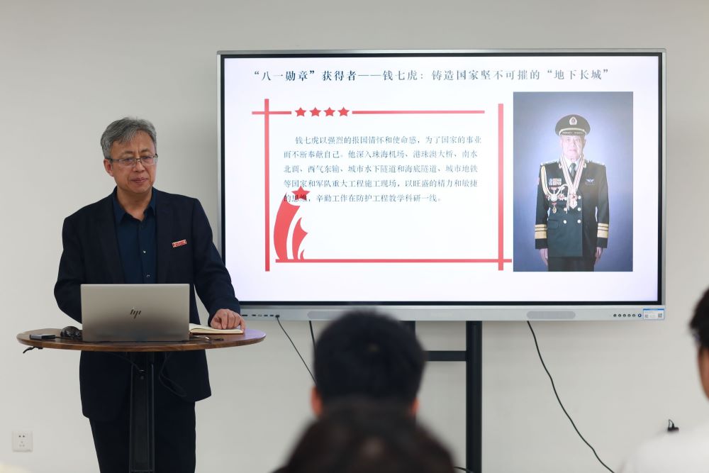 赵宝成以《小我融入大我,青春献给祖国》为题,以为国铸就“地下钢铁长城”的钱七虎院士和“中国现代桥梁之父”茅以升的红色故事为主线,从专业角度介绍红色人物个人发展与国家前途命运紧密结合的现实贡献和伟大意义,引导学生正确认识时代责任和历史使命,正确认识远大抱负和脚踏实地。
