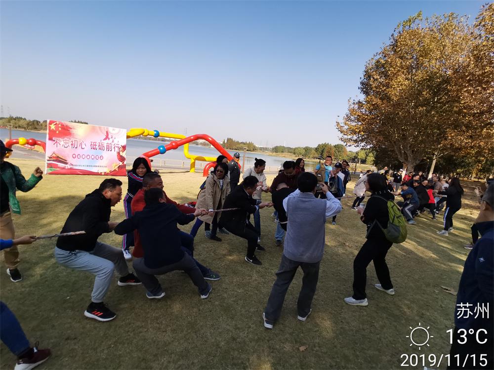 该活动由传统拔河、益智汉诺塔、环湖探宝活动组成。在传统拔河和益智汉诺塔活动中,各系老师发扬团队协作的精神,争先恐后,挥汗如雨。通过寻找沿湖彩色卡片的方式,老师们在环湖探宝项目中充分享受东沙湖沿湖的美景,体验沿湖健步快走的运动乐趣。