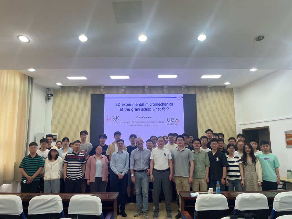 作者:王浩栋 韩亮 来源:搜同 发布日期:2024-06-06 浏览:次2024年6月4日上午9:30,在搜同 北楼二楼报告厅,来自法国格勒诺布尔-阿尔卑斯大学的Gioacchino Viggiani教授应蒋明镜教授邀请为我院师生作了题为“3D experimental micromechanics at the grain scale: what for”的学术报告。