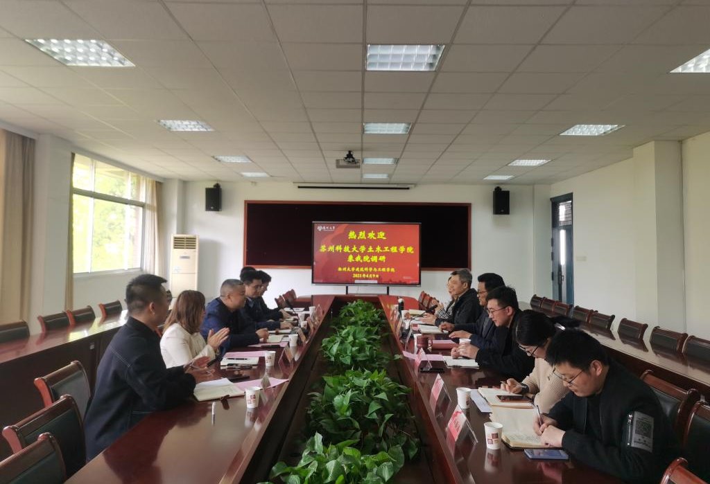 作者:廖想想 来源:搜同 发布日期:2021-04-13 浏览:次为了进一步增强学生创新意识和创业精神,搜同 于4月9日赴扬州大学建筑科学与工程搜同交流大学生创新创业工作。搜同党委副书记兼副院长刘建峰带队参加交流。扬州大学建筑科学与工程搜同党委书记贡福海,党委副书记王志健,土木工程系主任王琨出席交流会。