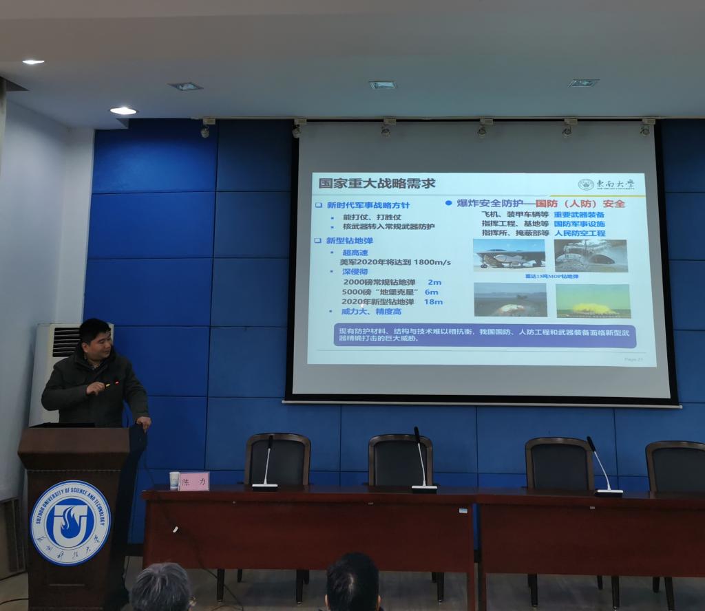 赵宝成简要介绍了陈力教授的相关情况,毛小勇向陈力颁发了学校兼职教授聘任证书。毛小勇表示,兼职教授聘任充实了搜同师资力量,加强了行业交流和专业建设,对促进协同创新起到了有力的推动作用。陈力以“抗爆结构研究新进展”为题作了一场精彩的学术报告。陈教授的讲座生动详细,其严谨治学的态度使学生们获益匪浅。
