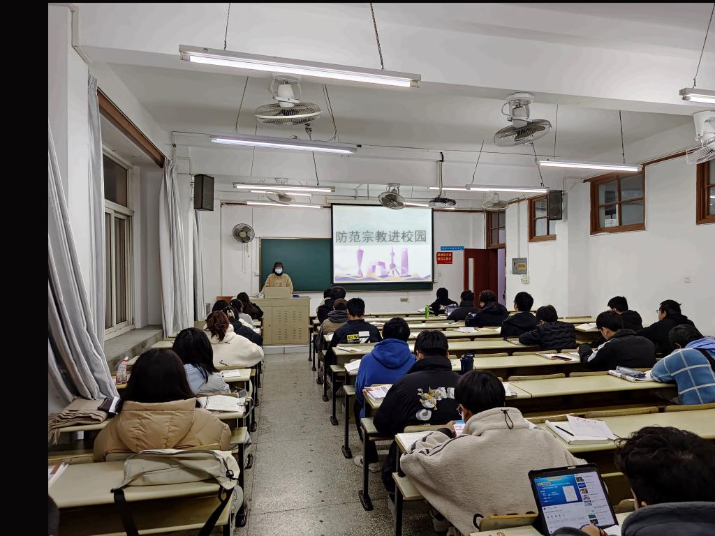 为了使学生更加全面、准确地了解非法宗教的内容,辅导员详细讲解了“什么是宗教渗透”、“高校宗教渗透的特点”、“我国的宗教政策与校园有关的法律法规”、“共产党员、共青团员能否信教”、“邪教有什么特征”以及“作为在校大学生,我们应该怎么做”,引导学生正确认识和对待宗教问题。同时,通过部分真实案例教导同学们应该怎样有效抵御宗教渗透:一是时刻保持清醒的头脑;二是知法,懂法,坚决抵制校园极端宗教思想的传播;三是加强思想武装,崇尚科学;四是警惕邪教和其他非法组织。如遇到不法宗教进行所谓的传教行为,同学们务必保持头脑冷静,不可轻信,要及时上报学校或直接报警。