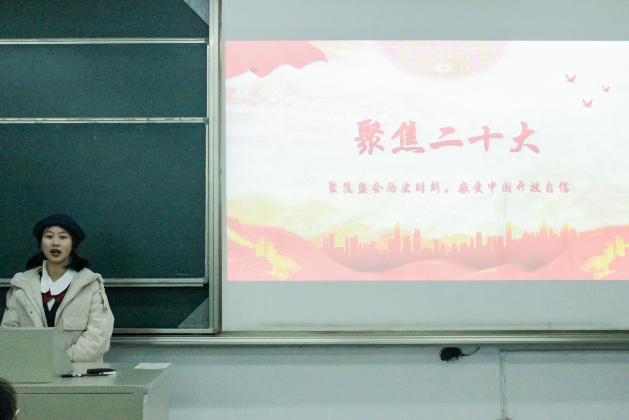 此次活动分为团支书宣讲团课、评委点评两个部分。第一部分,参赛的团支书围绕“学习党的二十大精神”这一主题进行现场展示。工管2212团支部的团支书朱钱龙用一个个具体的例子介绍了新时代中国科技上的成就,开拓了大家的视野;材料2212的团支书李亚泽和土木2214的团支书蒋域蓉都从历史角度切入,介绍了老一辈革命者的艰苦历程,并对新时代中国青年发出号召;工管2211的团支书王继鑫结合当下青年身处百年未有之大变局向青年们提出具体要求;土木2211的团支书陈怡从探索宇宙这一“微”带领我们学习党的二十大中的“载人航天精神”,一位位鲜活的航天人诠释出最美航天精神,鼓励当代青年树立“赴九天问苍穹”的远大理想。