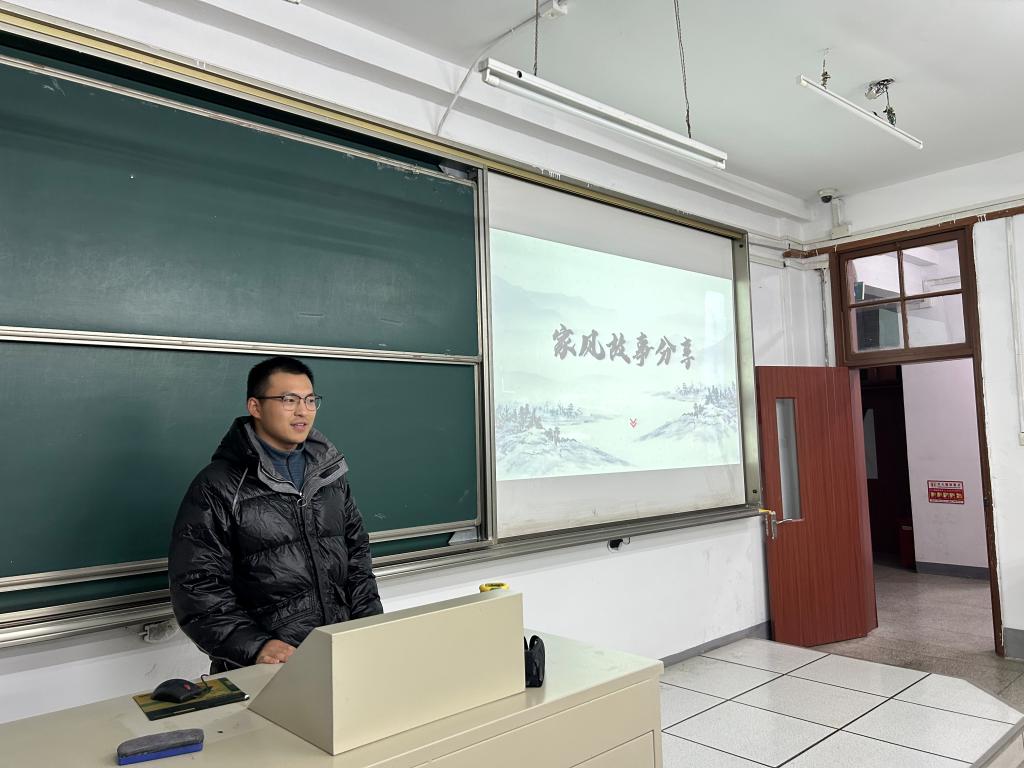 王国栋从廉以养德,廉洁修身,廉洁齐家三个方向向同学们讲述了优良家风对强化个人廉洁意识和塑造廉洁文化建设的重要作用。23级学生于黄浩,王烨,管斌依次分享自己对于廉洁家风的理解和做法,讲述了“亲尝汤药”“芦衣顺母”“吉鸿昌不忘家训”等关于“百善孝为先”的经典故事,强调了孝顺长辈的重要性。活动期间同学们踊跃表达自己的观点,从同学们的热情中可以看出,大家对于优良家风重视程度。