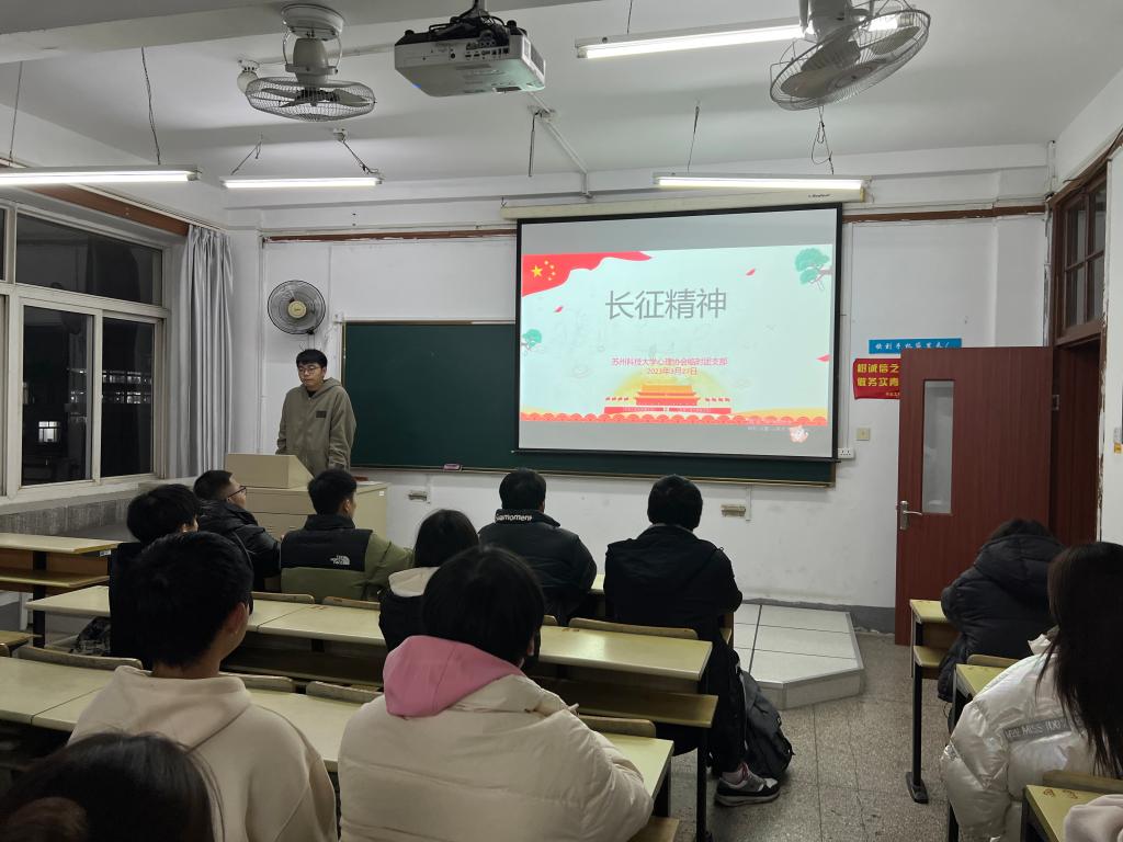 发布日期:2023-03-27 浏览:次“忆往昔峥嵘岁月,风华正茂挥斥方遒”。为引导同学们追寻红色足迹,锤炼坚定信仰,2023年3月27日,搜同 心理协会于2教405展开了长征精神学习活动。本次活动由邱锐同学主持。