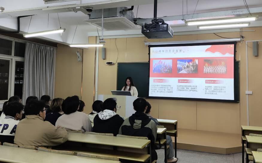作者:周洁 发布日期:2024-11-21 浏览:次以史为鉴,感怀英雄伟绩,铭记长征精神。2024年11月20日晚8:40,在二教407徐涵玥部长为全体部员开展了本学期的思政教育活动。本次公开课的主题是“弘扬长征精神,赓续红色血脉,传承奋斗精神”。