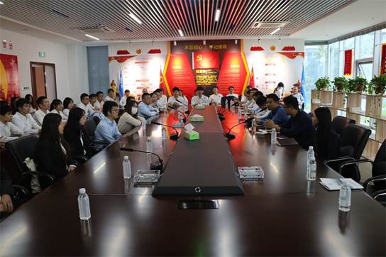 参观结束后,师生代表与中设集团公司代表进行了座谈,集团负责人孙总首先欢迎了各位同学及老师的到来,并介绍了集团公司注重党的建设和人才培养,以党建和人才培养引领企业发展,经营业绩稳步提升,党建成果和慈善公益成果颇丰。学生代表也踊跃发言,表达了对公司发展的赞叹并提出了相关疑问。