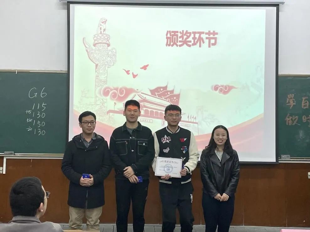 EDGyyds队苏贞文、殷志欢、朱雨南;123队陈雨薇、王唤唤、尹泽;不对也队惠晨曦、鞠俊杰、王世笛同学荣获优胜奖。心中有党成绩理想队徐峰、张枭、杨国栋同学荣获三等奖、永远都队尤子豪、徐晨、魏萱同学荣获二等奖、铁道游击队张肖、何建坤、石凯澳同学荣获一等奖。