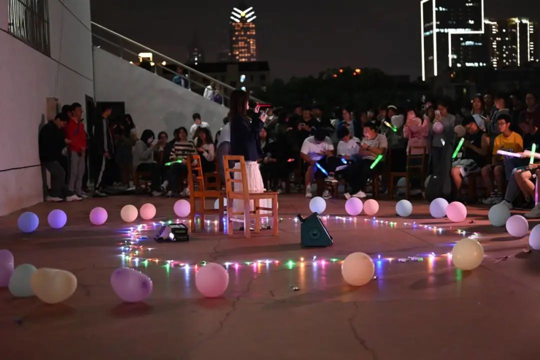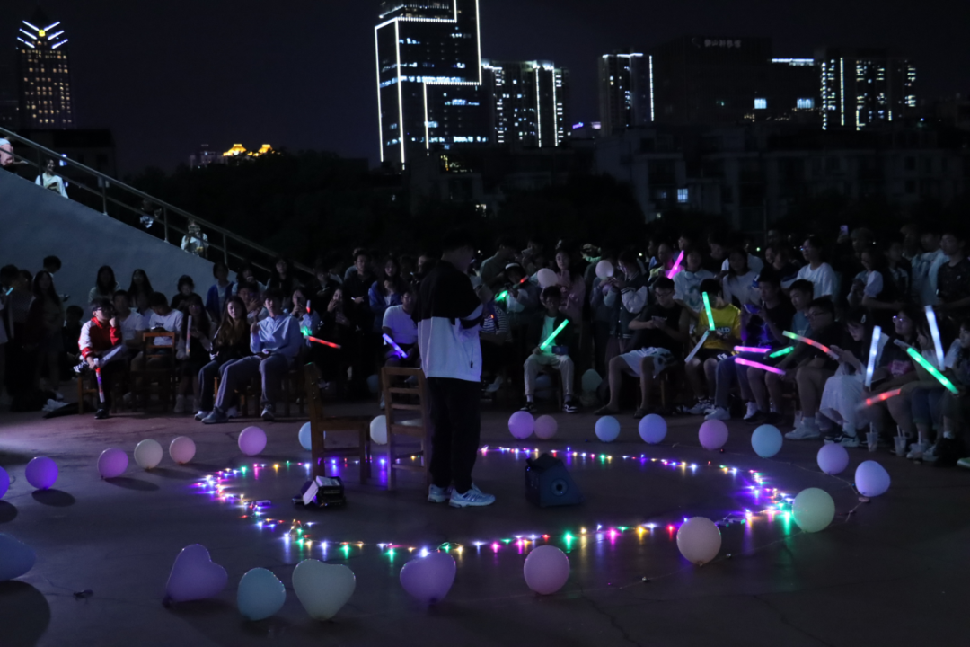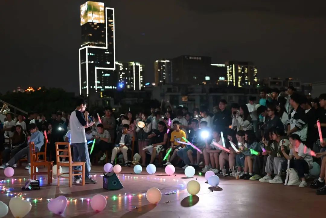 活动中,同学们围绕在演唱者身旁,暮色的操场此刻因一簇簇黄色灯光的闪烁而热闹非凡。悦耳动听的旋律,轻柔而优美的歌声,令人沉醉,本该安静的校园变得充满活力。此次活动的圆满举办,增进了同学们之间的互动,丰富了校园文化生活,为同学们提供了展示个性风采和青春风貌的舞台。