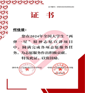 各类社会实践中,本班同学积极参与参与,其中何佳壕同学从2024年9月1日开始,在搜同 和线上进行了为期两个月的“两弹一星”精神志愿宣讲;应思竹同学从2023年11月21日开始,在搜同 进行了为期两个月的同伴教育青春健康大讲堂