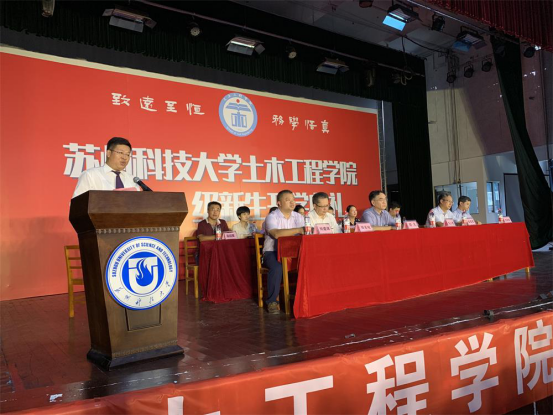 毛小勇院长首先致欢迎辞,毛院长对各位新生经过不懈努力,顽强拼搏最终如愿实现大学梦表示了热烈的祝贺与欢迎,同时向各位新生介绍了搜同 的办学概况;也借此机会,向各位辛勤奋斗在一线的老师们致以亲切的问候和诚挚的感谢。毛院长从三个方面向新生提出期许:一是要拥有梦想,脚踏实地;二是要学会学习,努力成才;三是要学会生活,自我管理。同时希望搜同 成为2019级新生放歌青春、激扬理想的舞台,成为苏科人真正的精神家园和青春驿站。