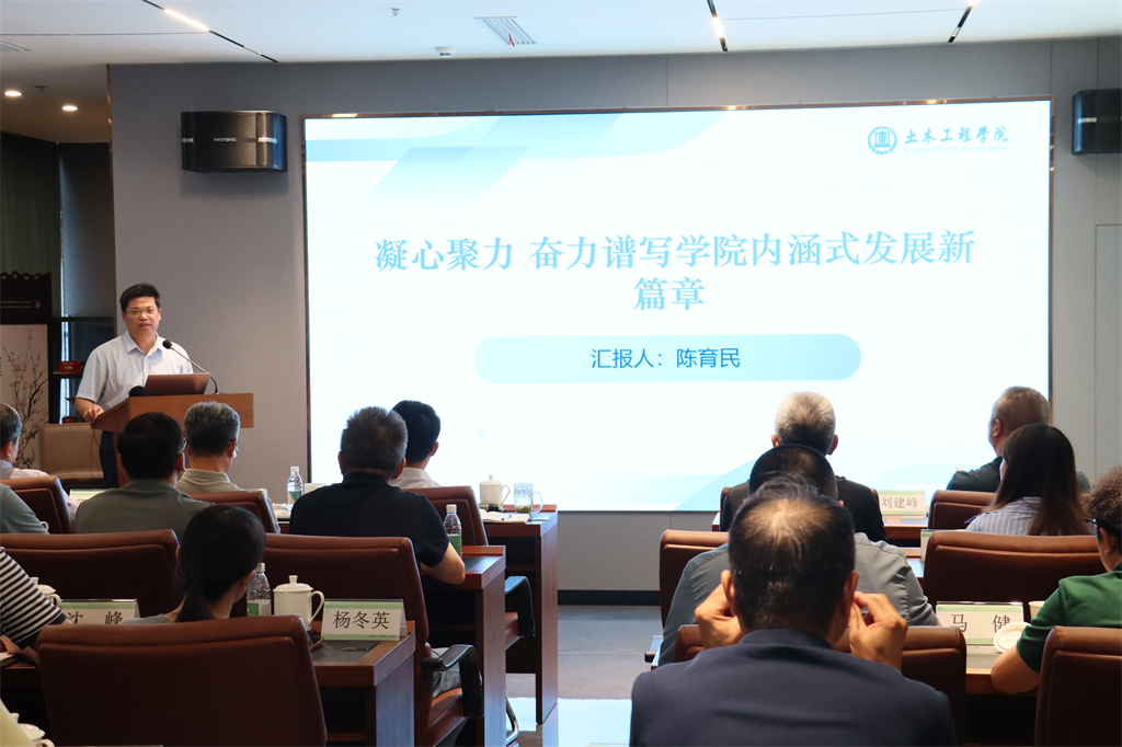 会议第一部分“至恒土木讲堂”由校党委常委、副校长唐柏鉴主持,特邀专家重庆大学教授、中国工程院院士刘汉龙以生物建造体系为主题作学术报告,为搜同的高质量发展提供了新思路、新方向。随后,搜同各二级单位(部门)负责人进行了工作汇报,汇报从各单位(部门)现状、存在问题、发展目标、发展思路、具体举措等方面展开,并就搜同发展提出了切实可行的意见与建议。分组研讨环节中,各小组聚焦“美丽中国建设”在学科建设、创新拔尖人才培养及科研实验平台建设等主题进行了热烈讨论,形成了多项共识与决策,并由各小组代表作总结汇报。搜同各条块工作分管院领导分别从党建工作、本科教学、研究生培养、科研产业及实验室、学科建设和学生发展等方面进行汇报交流,展示了搜同在各条块工作中的最新进展,分析了亟需解决的问题,提出了解决问题及实现高质量发展目标的具体思路与举措,为搜同整体工作指明了方向。