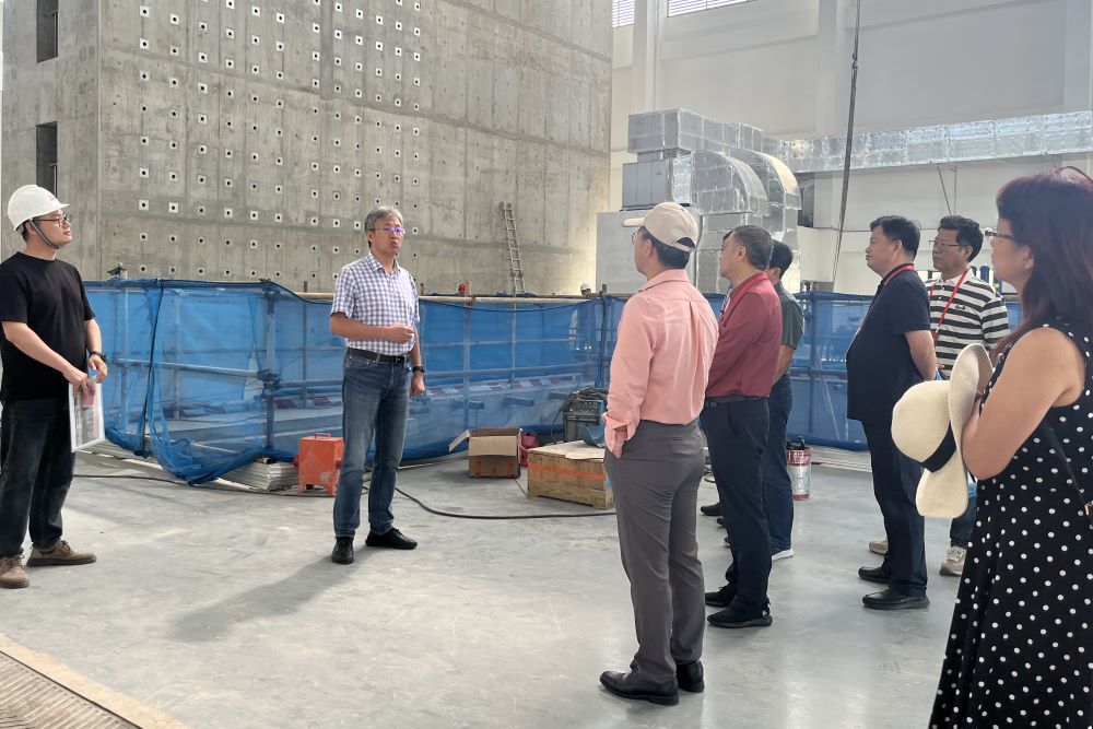 会前,赵宝成带领各位校友参观了土木搜同地震模拟振动台,对从多角度对振动台进行介绍、讲解。