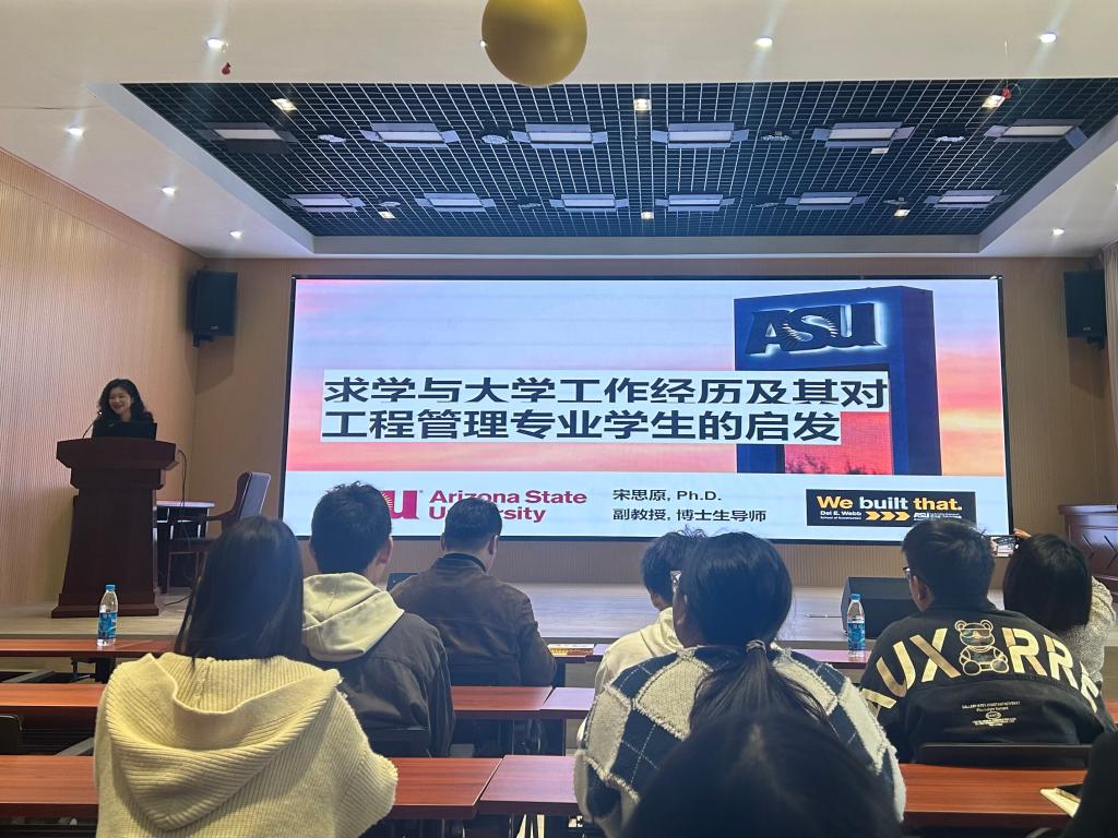 宋思原副教授进行了以“求学与大学工作经历及其对工程管理专业学生的启发”为主题的讲座。她分享了自己在漫长求学历程与高校工作中的经历与感受,给同学们提供了留学指导,同时给同学们提供了许多大学生职业生涯规划的宝贵建议。